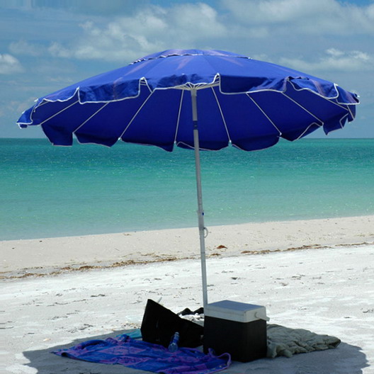 OptionsGreat for those sunny days on the beach! This oversized beach umbrella has a two-piece adjustable pole for proper shading and a pointed tip that twists easily into the sand.Manual openSteel frameNylon fabricAdjustable heightPowder coated steel to prevent rustingDimensions:Folded length: 83"Diameter: 62"Rib: 36"Arc: 72"Max imprint area: 10"W x 8"HShipping weight per 36 pcs.: 106lbsProduction time 10-15 daysNormal Production Time:15 Working Days Colors Red/White, Red/White/Navy, Royal/White, White Imprint Additional Imprint Color, First Imprint Color